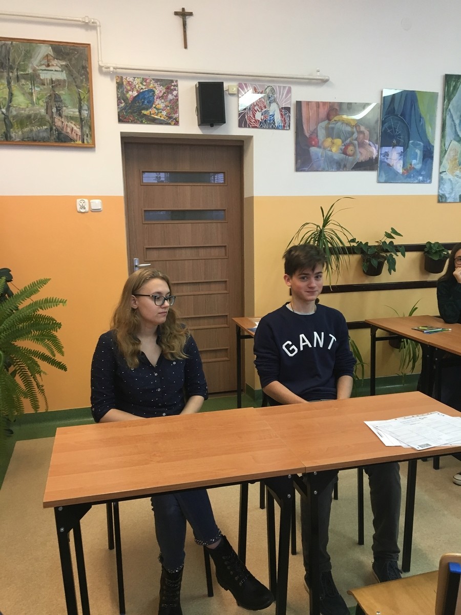 Przedstawiono pokrótce historię i cele Instytutu Goethego wspierającego znajomość języka i międzynarodową współpracę kulturalną. Licencjonowane Centrum Egzaminacyjne przy Politechnice Rzeszowskiej oferuje kursy i egzaminy na pięciu poziomach zaawansowania A1 - C1, wskazuje kandydatom zalecane podręczniki i materiały online. Zapraszając młodzież do skorzystania z naszej oferty mamy przekonanie, że poszerza to możliwości odniesienia sukcesu w życiu zawodowym i prywatnym. Niemcy proponują wiele miejsc stypendialnych i otwierają swoje uczelnie dla zagranicznych studentów, szczególnie w ramach umów dwustronnych i programów. Druga część spotkania miała charakter sprawdzianu praktycznej znajomości języka. Po zwięzłym omówieniu struktury egzaminu ustnego Goethe-Zertifikat A2 odbyła się symulacja tej części egzaminu. Wybrani uczniowie zmierzyli się z powodzeniem z formą i wymaganiami stawianymi kandydatom. Zaprezentowali wysoki poziom umiejętności językowych i sprawność w komunikacji. Pozostali uczniowie pozostali w rolach słuchaczy i obserwatorów, co z pewnością jest również cennym doświadczeniem.