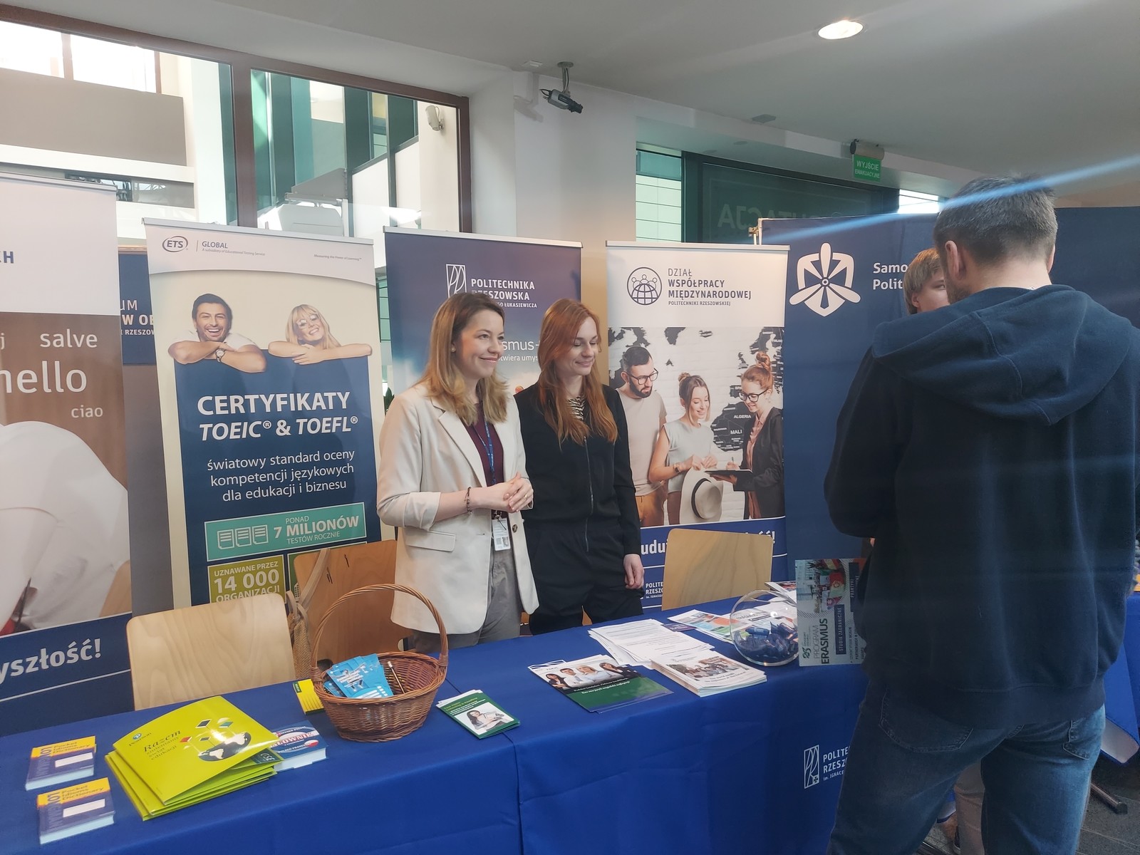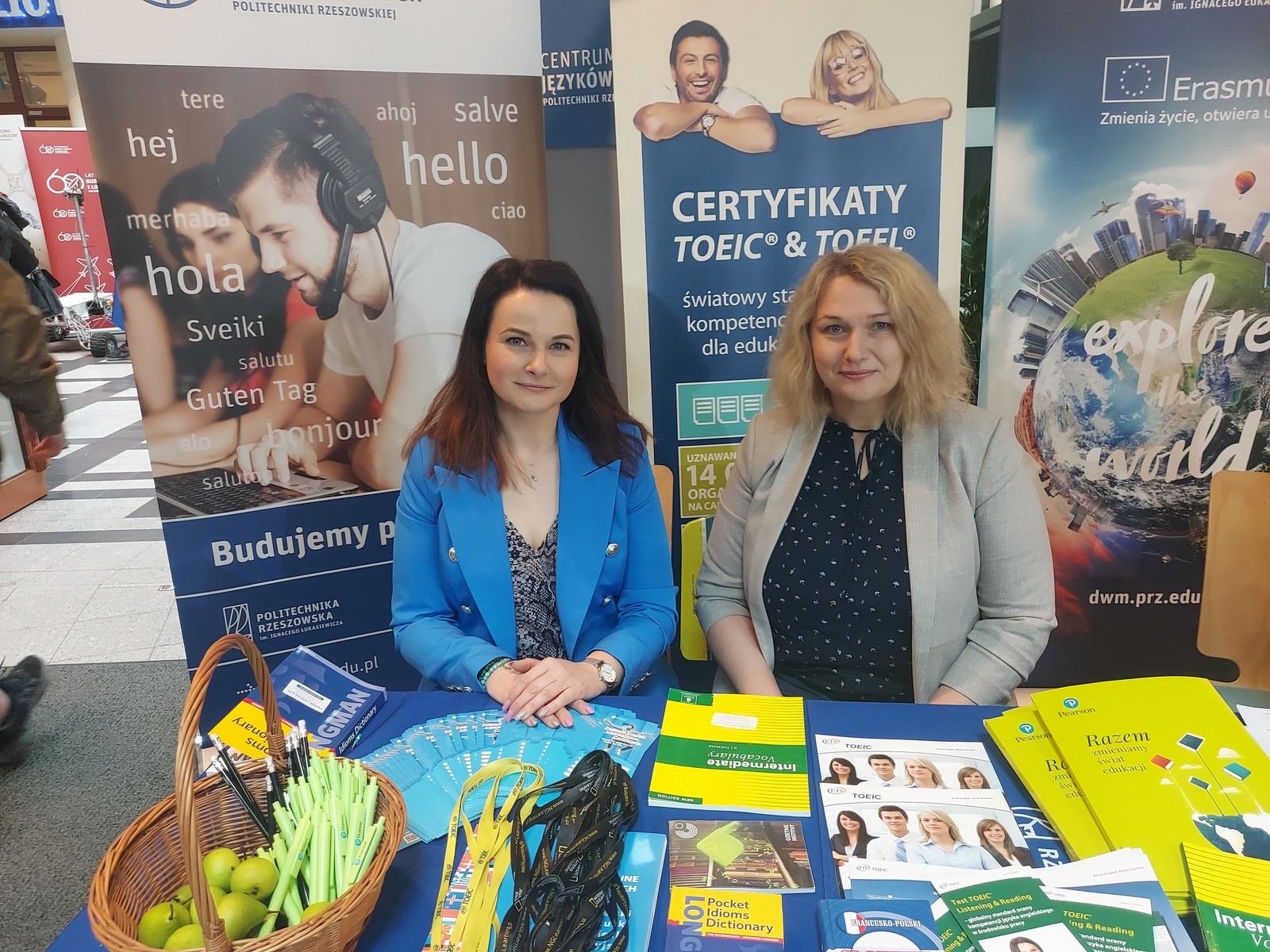 W ubiegły czwartek i piątek, tj. 20 i 21 kwietnia nasza jednostka uczestniczyła w Dniach Otwartych Politechniki Rzeszowskiej. Młodzi ludzie, wkraczający na drogę wyboru kierunku studiów związanego z ich przyszłym zawodem licznie gromadzili się przy stanowisku CJO, gdzie mieli okazję otrzymać wszelkie informacje na temat kształcenia w zakresie języków obcych i zapoznać się z naszą bogatą ofertą. Wśród pytań dominowały te, dotyczące języków, jakich uczymy i poziomu zaawansowania, na jakim prowadzone jest kształcenie, warunków przystąpienia do lektoratów i czy są one zakończone obowiązkowym egzaminem. Mając świadomość, że polska matura formalnie nie ma mocy potwierdzającej czy dokumentującej znajomość języka obcego za granicą, uczniowie żywo interesowali się egzaminami międzynarodowymi z języków obcych przeprowadzanymi przez CJO oraz możliwością zdobycia certyfikatu będącego uzupełnieniem CV i dowodem kompetencji językowej. Były również pytania odnośnie do nauczania języka polskiego, jako obcego.