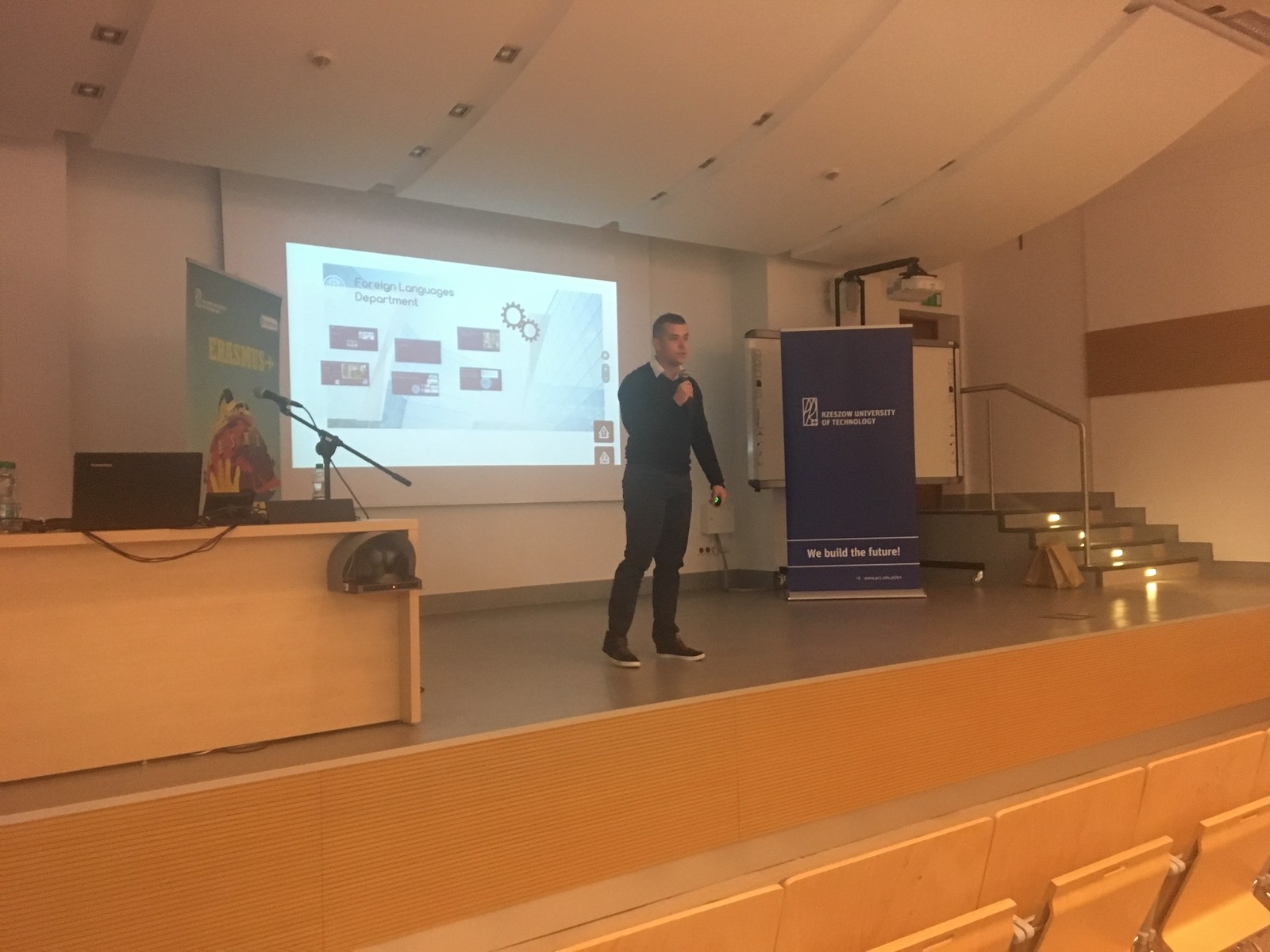 It was our great privilege to participate in the event and present the Foreign Languages Department. On behalf of FLD, our colleague Łukasz Czułno (an English teacher) provided comprehensive information on how the Department works, presented our language offer, talked about highly qualified language teachers, and familiarised the audience with the location of Building J and well-equipped didactic rooms. The talk was supported with a very effective Prezi presentation.