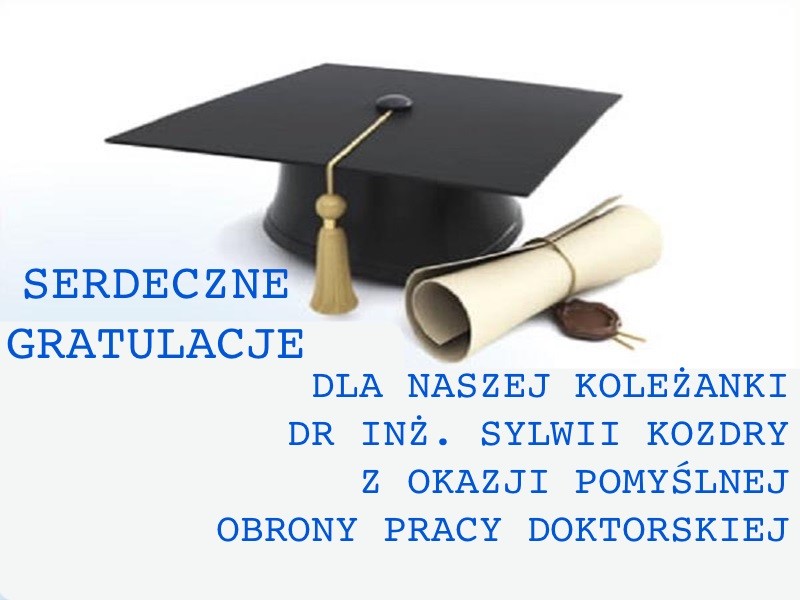 W dniu 23.09.2019 r. odbyła się publiczna obrona rozprawy doktorskiej mgr inż. Sylwii Kozdry nt. „MECHANOCHEMICZNE OTRZYMYWANIE I BADANIA WŁAŚCIWOŚCI POLIMEROWYCH KOMPOZYTÓW PRZEWODZĄCYCH”.