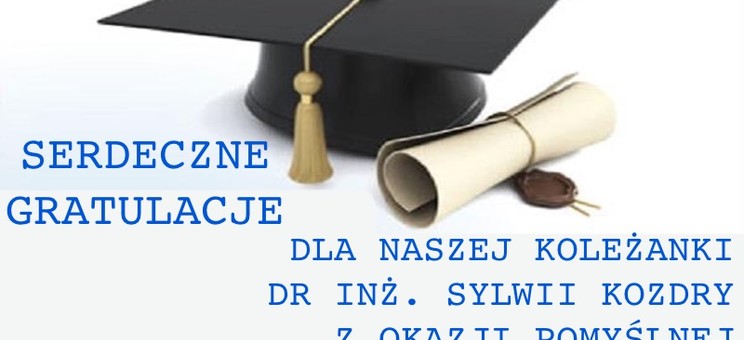 Z tej okazji chcielibyśmy serdecznie pogratulować naszej koleżance wspaniałego sukcesu, na który niewątpliwie złożyła się wieloletnia i systematyczna praca. Mieliśmy okazję poznać jak obowiązkową, sumienną i zaangażowaną osobą jest Sylwia, gdyż przez ostatni rok zatrudniona jest tymczasowo w Studium Języków Obcych na stanowisku Starszego Referenta Inżynieryjno-Technicznego.