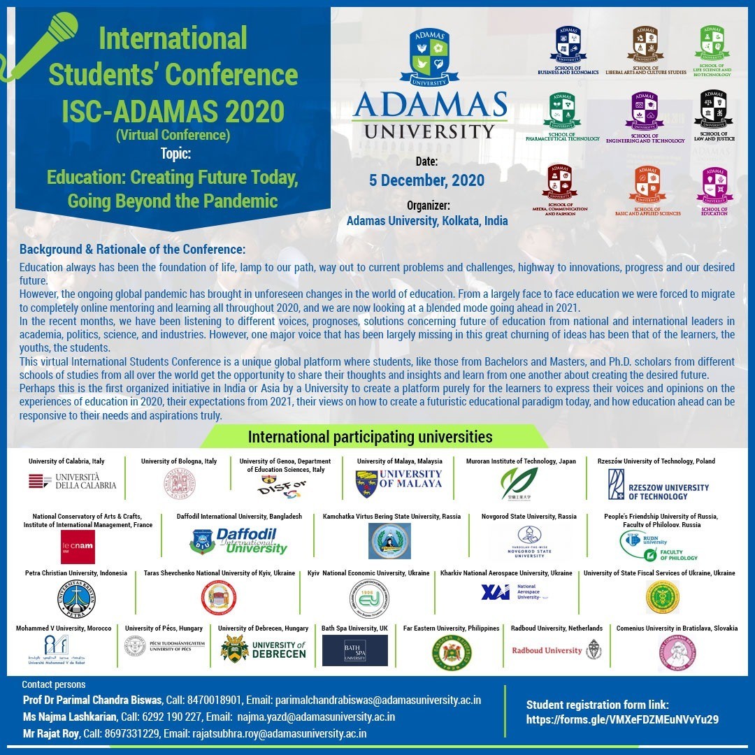 Więcej informacji oraz link do rejestracji: http://adamasuniversity.ac.in/isc-adamas-2020/