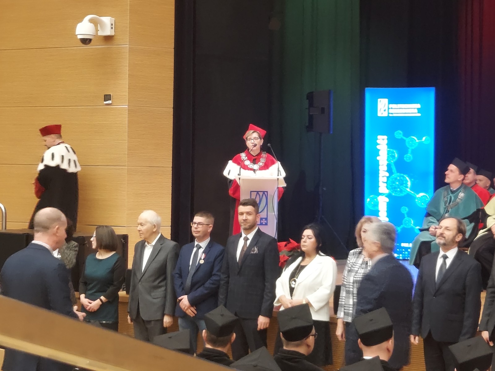 Składamy serdeczne gratulacje naszej koleżance mgr Ilonie Majkowskiej oraz koledze mgr. Mateuszowi Fleszarowi z okazji otrzymania Medalu Komisji Edukacji Narodowej. Uroczyste wręczenie tej prestiżowej nagrody nadanej przez ministra edukacji i nauki odbyło się podczas grudniowego posiedzenia Senatu Politechniki Rzeszowskiej. Medale wręczyli podkarpacki wicekurator oświaty w Rzeszowie Stanisław Fundakowski oraz rektor naszej uczelni prof. dr hab. inż. Piotr Koszelnik.