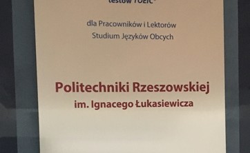 Studium Języków Obcych Politechniki Rzeszowskiej otrzymało nagrodę za bardzo sprawną organizację egzaminów TOEIC.