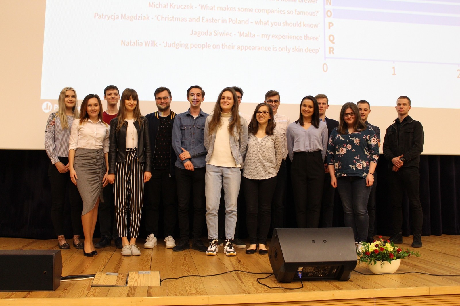 Składamy serdecznie podziękowania oraz ogromne gratulacje naszym wspaniałym studentom za uczestnictwo w konkursie na najbardziej kreatywną i oryginalną formę prezentacji podczas pierwszej uczelnianej edycji wystąpień publicznych w języku angielskim pt.: PoliTalk zorganizowanej przez Studium Języków Obcych Politechniki Rzeszowskiej.