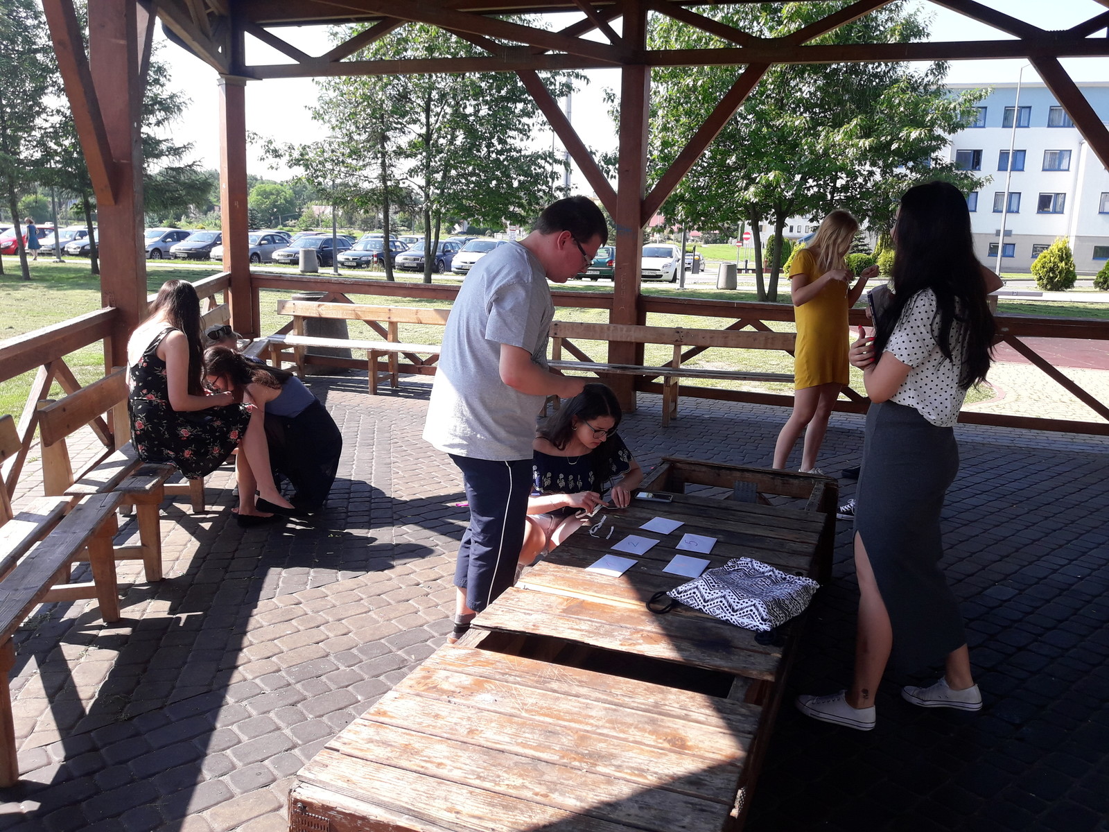 Do głównego wyzwania należało rozwiązywanie zadań przygotowanych przez studentów. Poziom zaangażowania i plusy współzawodnictwa można dostrzec na zdjęciach. W ten sposób powtórzona została gramatyka i zagadnienia leksykalne z całego semestru. Wzrosła także pewność, że studenci nie zgubią się już w na terenie kampusu.