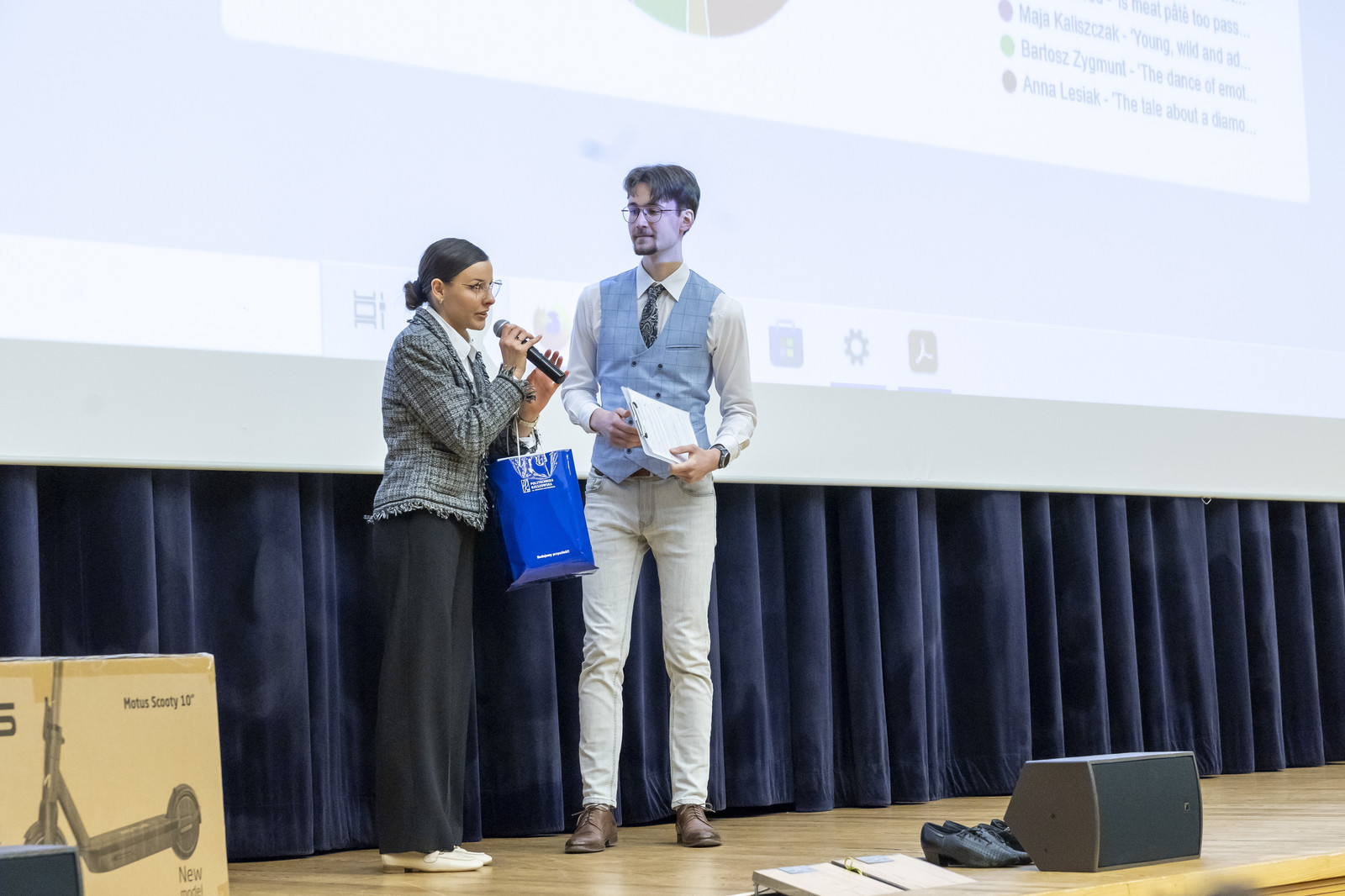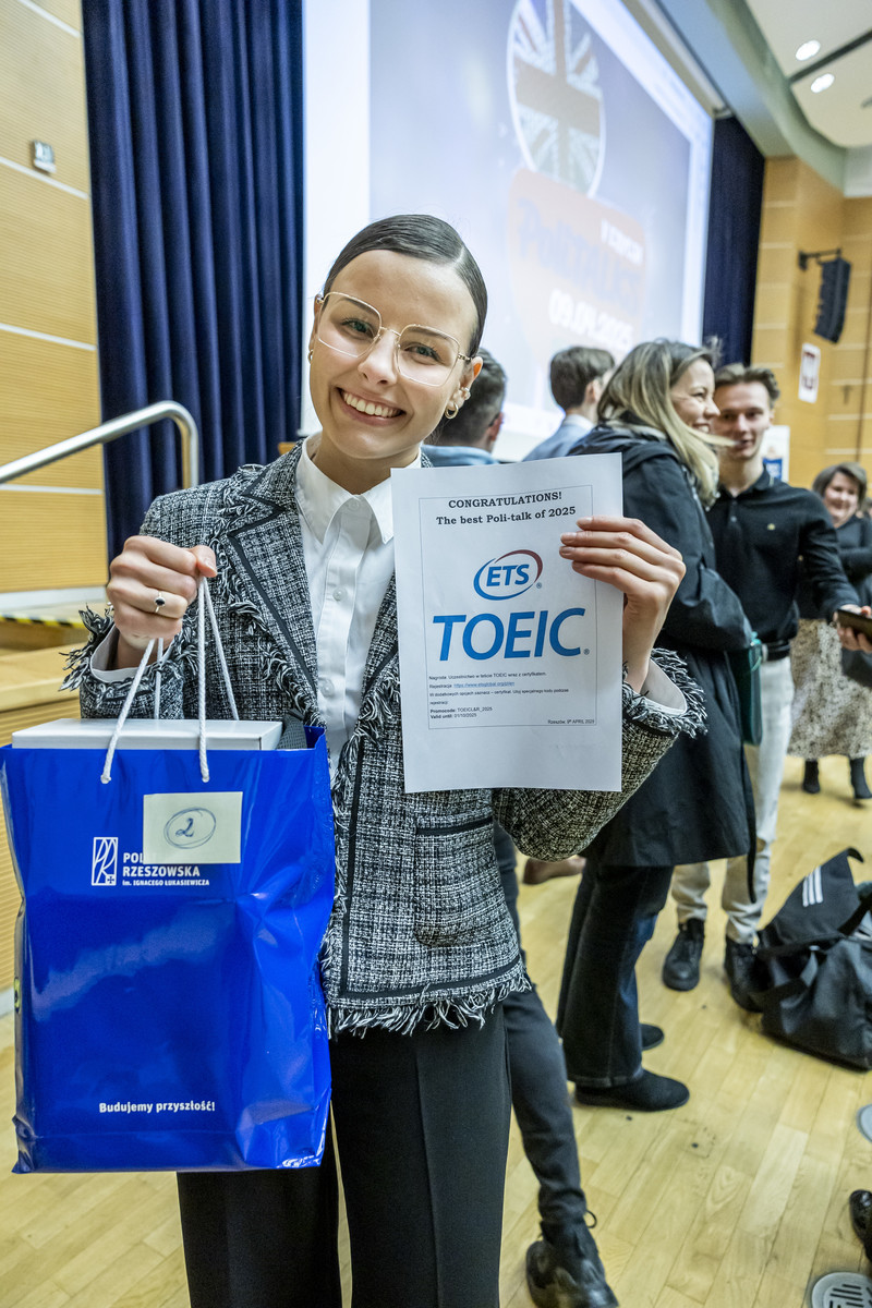 Zwycięzcą tegorocznej edycji została Pani Maja Kaliszczak, która wystąpiła z tematem ‘Young, wild and adventurous: travel beyond your comfort zone’. Była to najciekawsza, według jury składającego się z nauczycieli Centrum Języków Obcych prezentacja o wyjściu ze strefy komfortu, podróżach i pokonywaniu swoich słabości. Urzekła nas nie tylko ta historia, ale również kunszt językowy prelegentki, tzn. łatwość posługiwania się językiem obcym w kontekście, bezbłędna wymowa oraz poprawność gramatyczna. Zwyciężczyni otrzymała nagrodę główną ufundowaną przez Dział Współpracy Międzynarodowej – hulajnogę elektryczną, zwolnienie z egzaminu kończącego lektorat, wstęp na test TOEIC ufundowany przez firmę ETS Global, a także nagrody rzeczowe ufundowane przez Centrum Języków Obcych oraz firmę PZL Mielec, która od lat wspiera nas w tym przedsięwzięciu.