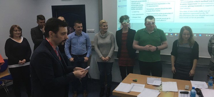 Dzisiaj zespół anglistów naszego Studium uczestniczył w spotkaniu z przedstawicielem British Council, Mattem Byrskim, który przeprowadził warsztaty na temat specyfiki i metod ewaluacji egzaminów Cambridge First i Advanced. Egzaminy Cambridge odbywają się w 160 krajach i cieszą ogromną popularnością wśród młodzieży szkolnej, akademickiej oraz dorosłych, którzy potrzebują potwierdzenia swoich umiejętności językowych w pracy. Są to egzaminy uznawane przez pracodawców zarówno sektora prywatnego jak i publicznego.