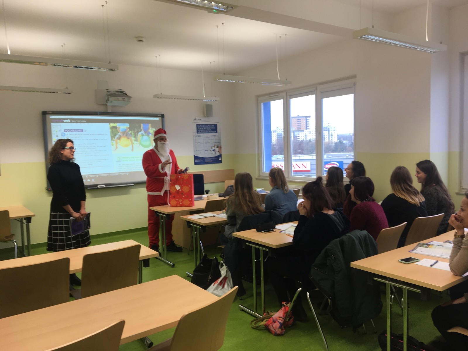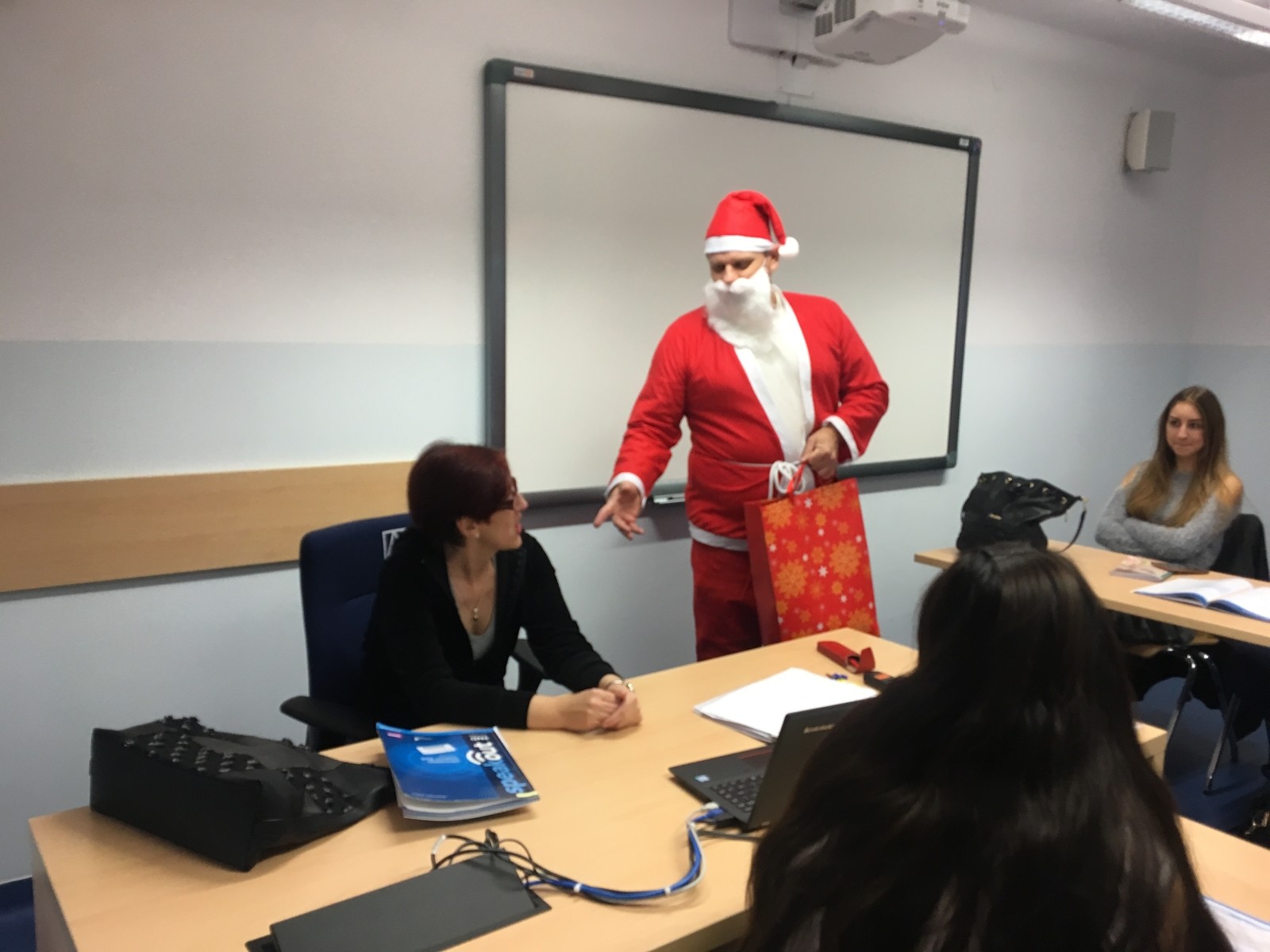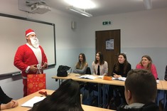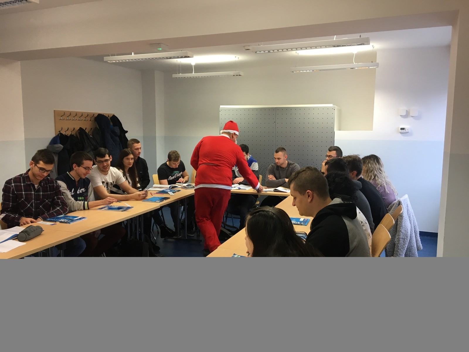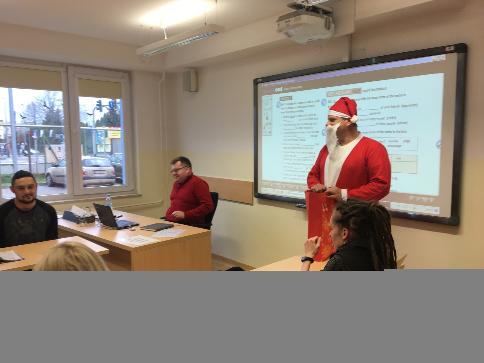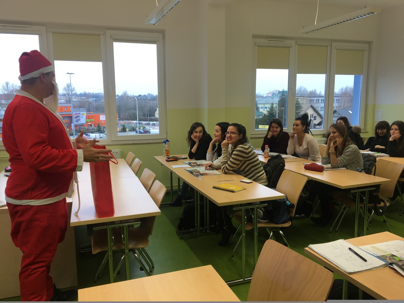Dzisiaj w SJO zawitał niespodziewanie Święty Mikołaj. Przybył ze słodką niespodzianką i odwiedził wiele grup odbywających lektoraty w naszym budynku. Rozmawiał ze studentami, zadawał mnóstwo pytań i zachęcał do solidnej nauki języków obcych. Co najważniejsze, mówił wyłącznie po angielsku. Wzbudził ogromne zainteresowanie i radość, i z pewnością uprzyjemnił nasze zajęcia. Zapewnił, że przybył tu w nagrodę za doskonałe sprawowanie studentów PRz, ich zaangażowanie w lektoraty, oraz podkreślał, że świetna znajomość języków obcych jest ich atutem.