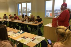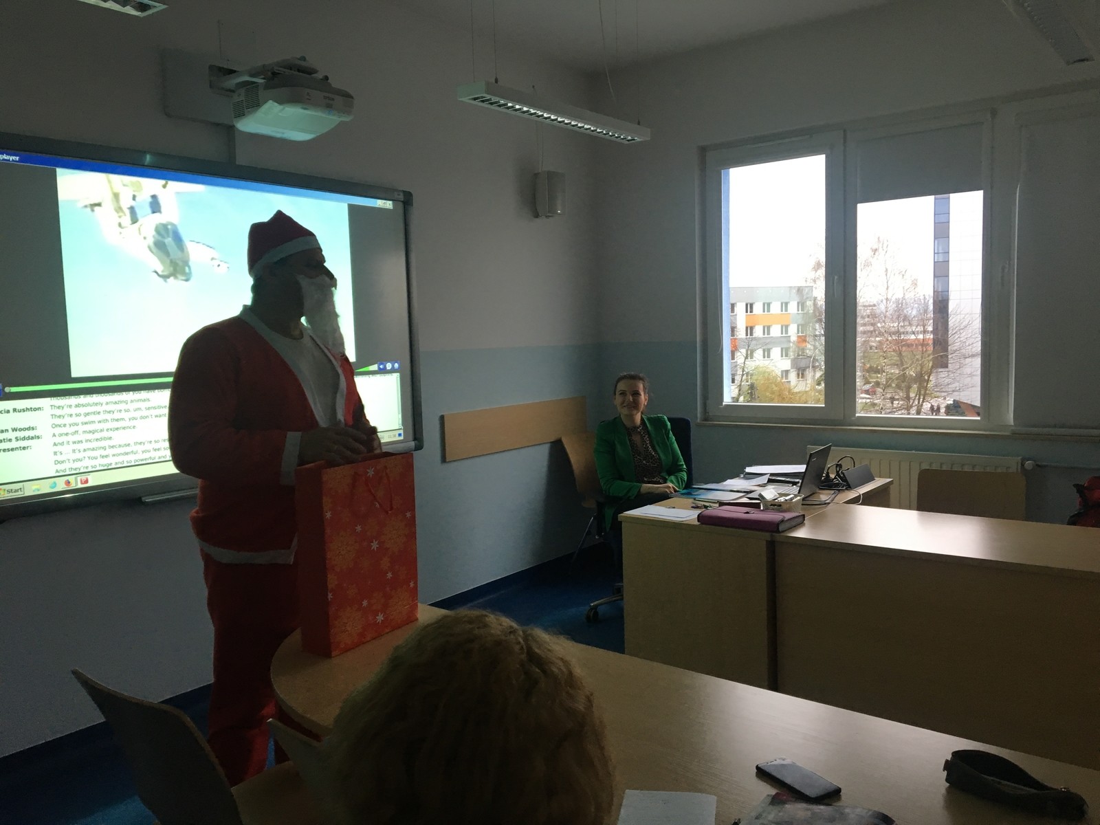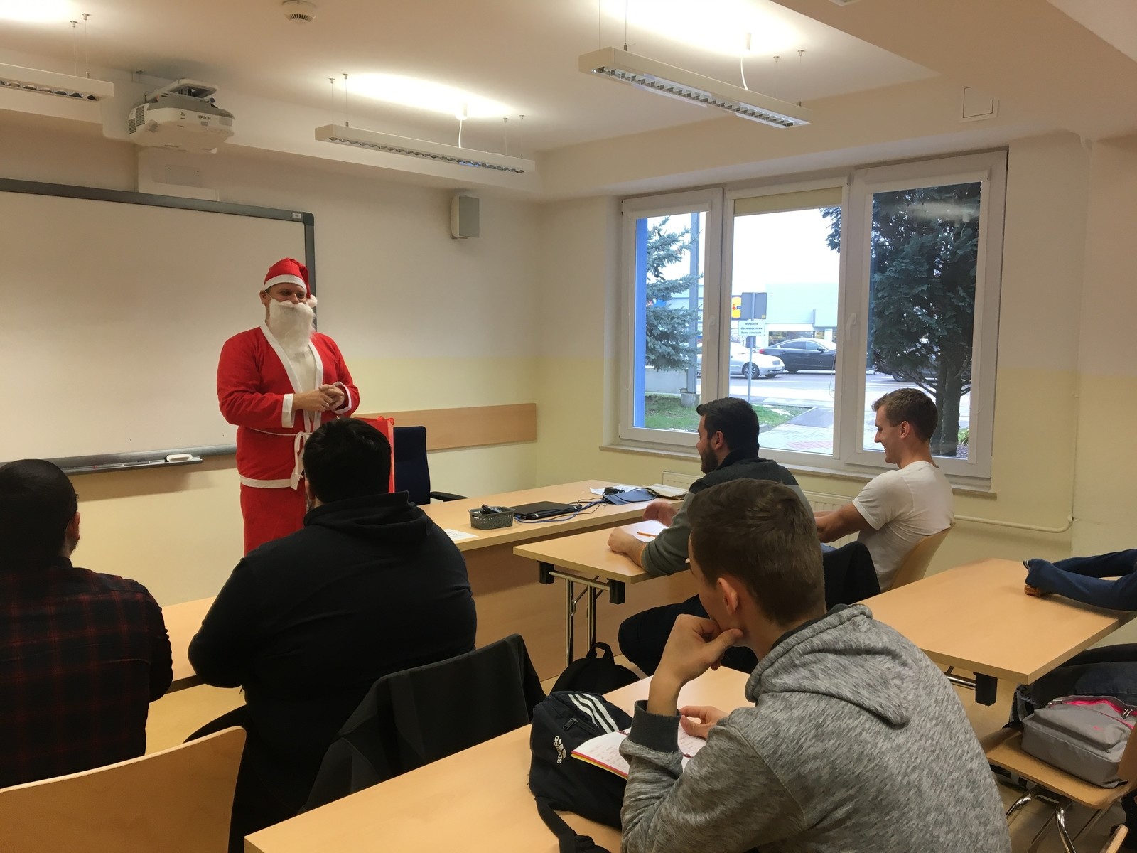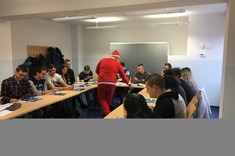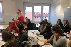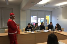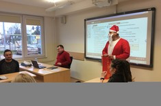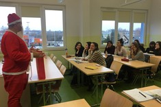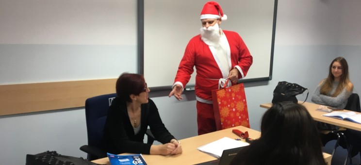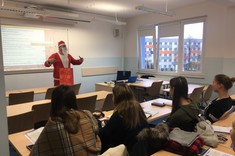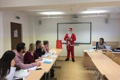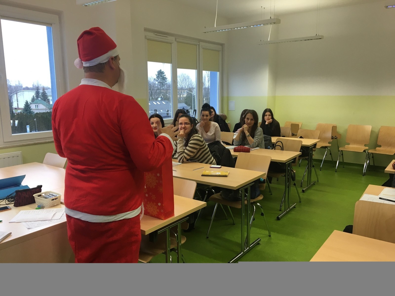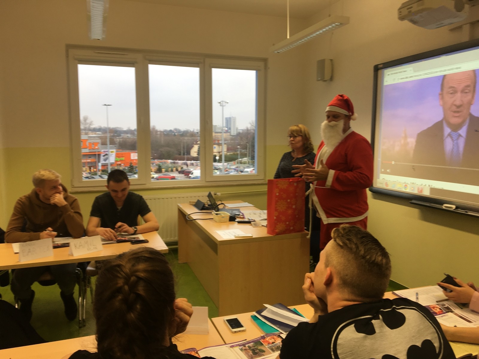 Dzisiaj w SJO zawitał niespodziewanie Święty Mikołaj. Przybył ze słodką niespodzianką i odwiedził wiele grup odbywających lektoraty w naszym budynku. Rozmawiał ze studentami, zadawał mnóstwo pytań i zachęcał do solidnej nauki języków obcych. Co najważniejsze, mówił wyłącznie po angielsku. Wzbudził ogromne zainteresowanie i radość, i z pewnością uprzyjemnił nasze zajęcia. Zapewnił, że przybył tu w nagrodę za doskonałe sprawowanie studentów PRz, ich zaangażowanie w lektoraty, oraz podkreślał, że świetna znajomość języków obcych jest ich atutem.