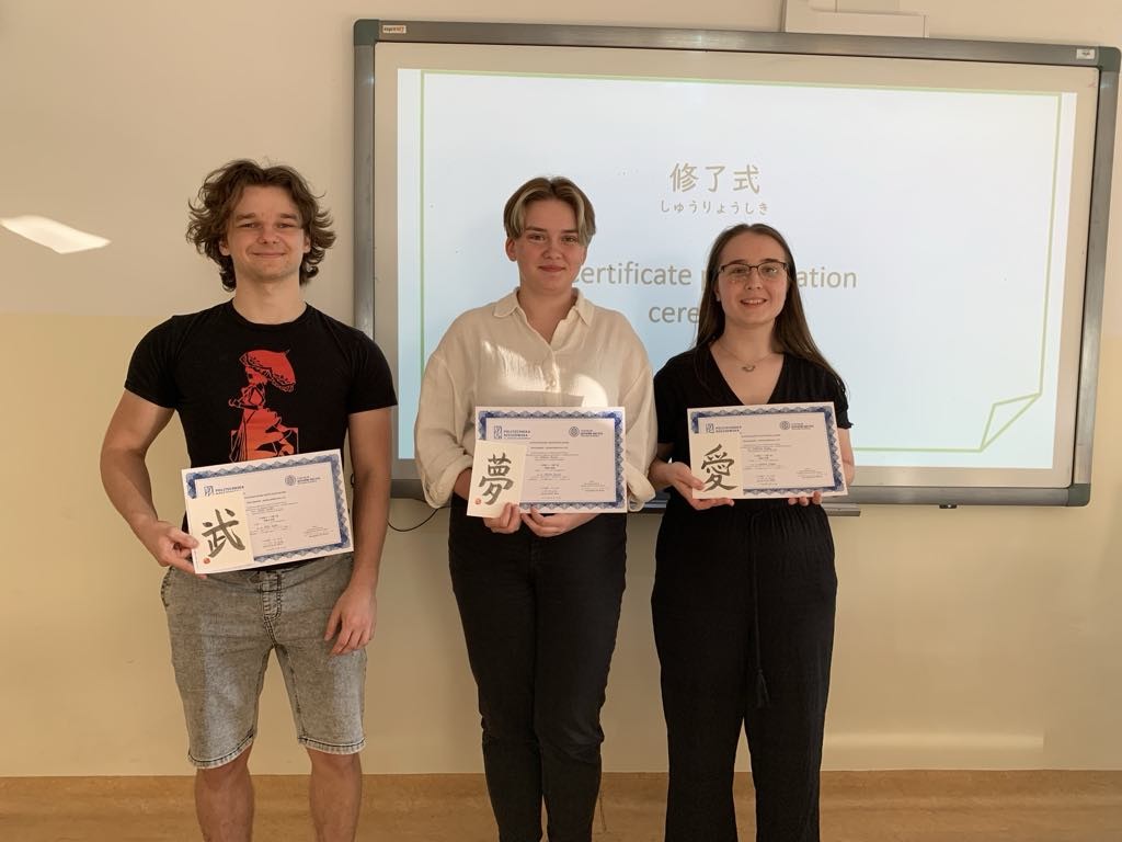 Wraz z końcem semestru zakończyła się kolejna edycja bezpłatnych zajęć z języka japońskiego. W przeciągu mijającego właśnie roku akademickiego studenci oraz pracownicy Politechniki Rzeszowskiej mieli okazję uczestniczyć w kursie prowadzonym przez wolontariuszkę z Japonii, Panią Shihomi Komurę , a następnie otrzymać certyfikat ukończenia kursu .