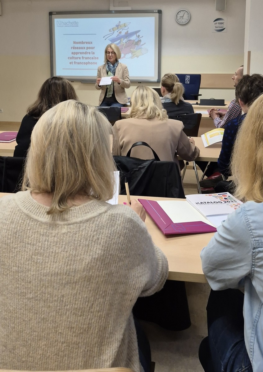 W dniu 17.05.2025 r. w CJO PRz odbyły się warsztaty metodyczne dla nauczycieli języka francuskiego z naszego regionu, których celem było pogłębienie wiedzy dydaktycznej, doskonalenie umiejętności nauczania oraz wymiana doświadczeń w zakresie nowoczesnych metod pracy z uczniami. Zajęcia prowadziła p. Barbara Klimek, doradca metodyczny wydawnictwa Hachette FLE. Podczas warsztatów uczestnicy mogli dowiedzieć się jak wprowadzać kulturę francuską i frankofońską do lekcji francuskiego dzięki wykorzystaniu wielu różnych dokumentów i mediów z autentycznych źródeł, aby zaangażować uczniów w proces uczenia się. Warsztaty były doskonałą okazją do wymiany doświadczeń między nauczycielami oraz poznania nowych strategii dydaktycznych.