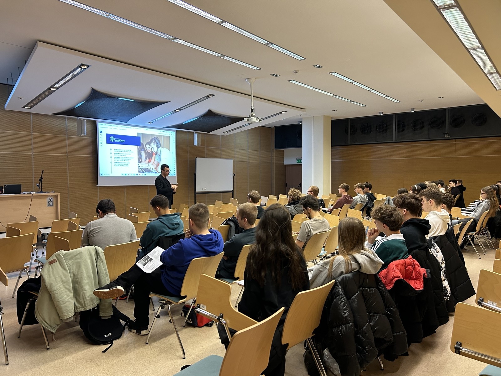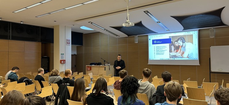 W ubiegłym miesiącu CJO odwiedziła grupa uczniów z IV Liceum Ogólnokształcącego im. Mikołaja Kopernika w Rzeszowie. Licealiści oraz studenci pierwszego roku studiów magisterskich na kierunku automatyka i robotyka wzięli udział we wspólnych zajęciach z języka angielskiego technicznego, które poprowadził dr Mateusz Szal.