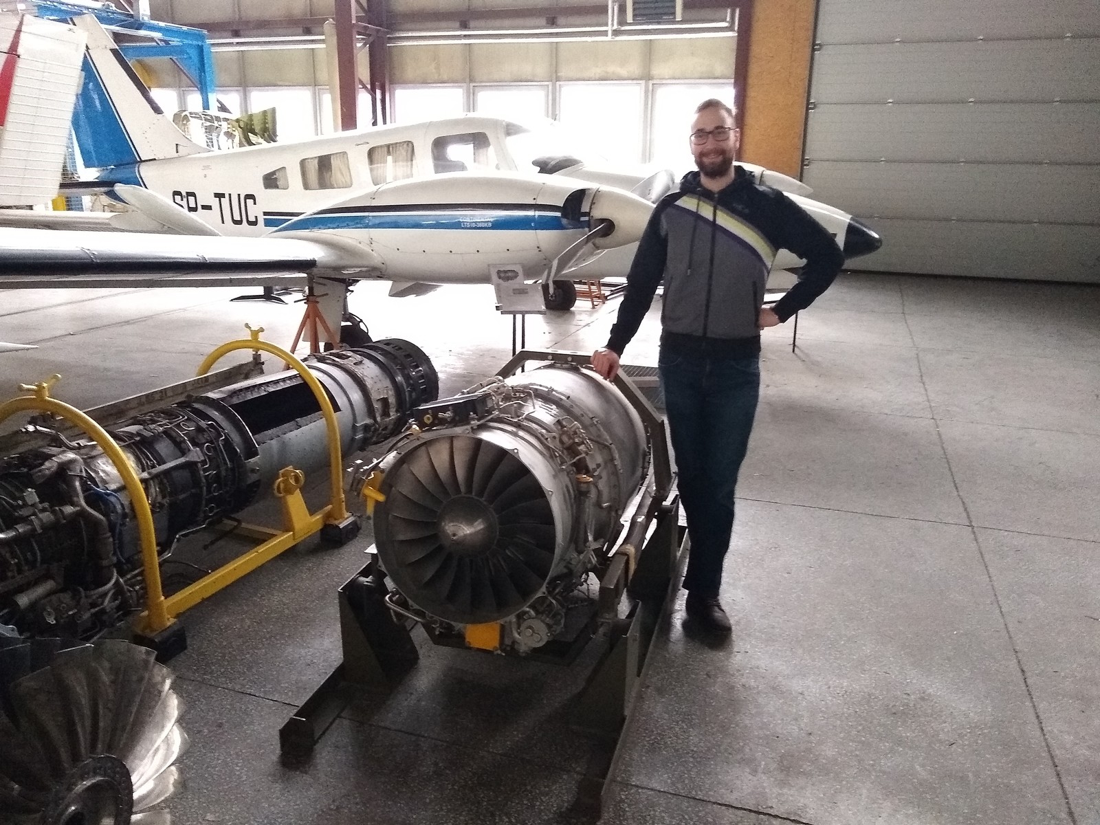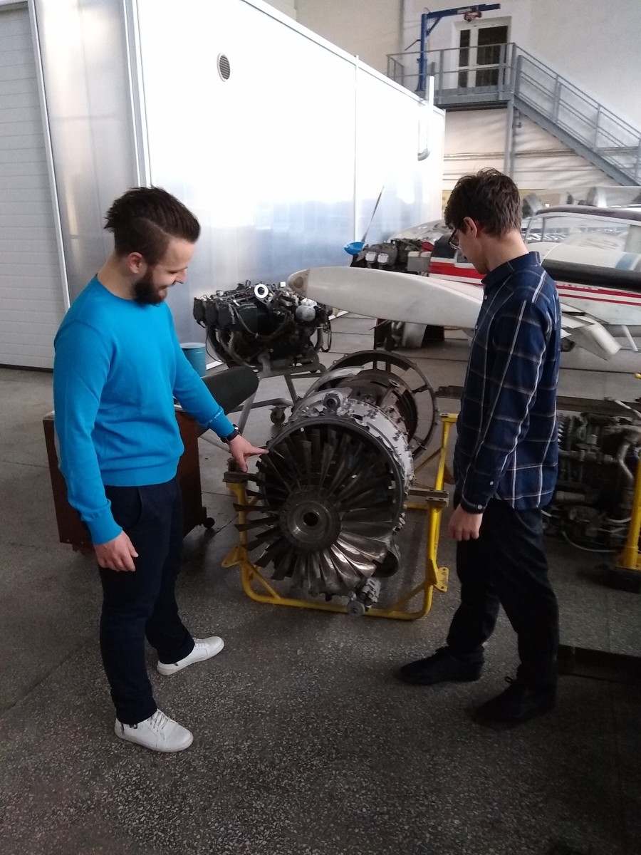 W dniu 28.01.2020 studenci studiów II stopnia kierunku lotnictwo i kosmonautyka o specjalności silniki lotnicze pod kierunkiem mgr. Piotra Czerwińskiego odbyli zajęcia z języka angielskiego w hali silników Katedry Samolotów i Silników Lotniczych. Zajęcia miały formę prezentacji studenckich w języku angielskim przy użyciu realiów w postaci zgromadzonych w hali silników tłokowych, turboodrzutowych, turbośmigłowych oraz turbo-wentylatorowych. Prezentacje obejmowały także budowę płatowca w oparciu o znajdujące się w hali samoloty. Celem zajęć było podsumowanie trzysemestralnego kursu „angielska terminologia lotnicza”, w trakcie którego studenci nabywali kompetencje posługiwania się językiem angielskim w inżynierii lotniczej, ze szczególnym uwzględnieniem kontekstu napędów lotniczych. Zajęcia przeprowadzono dzięki pomocy mgr. inż. Michała Kuźniara z Katedry Samolotów i Silników Lotniczych Wydziału Budowy Maszyn i Lotnictwa.