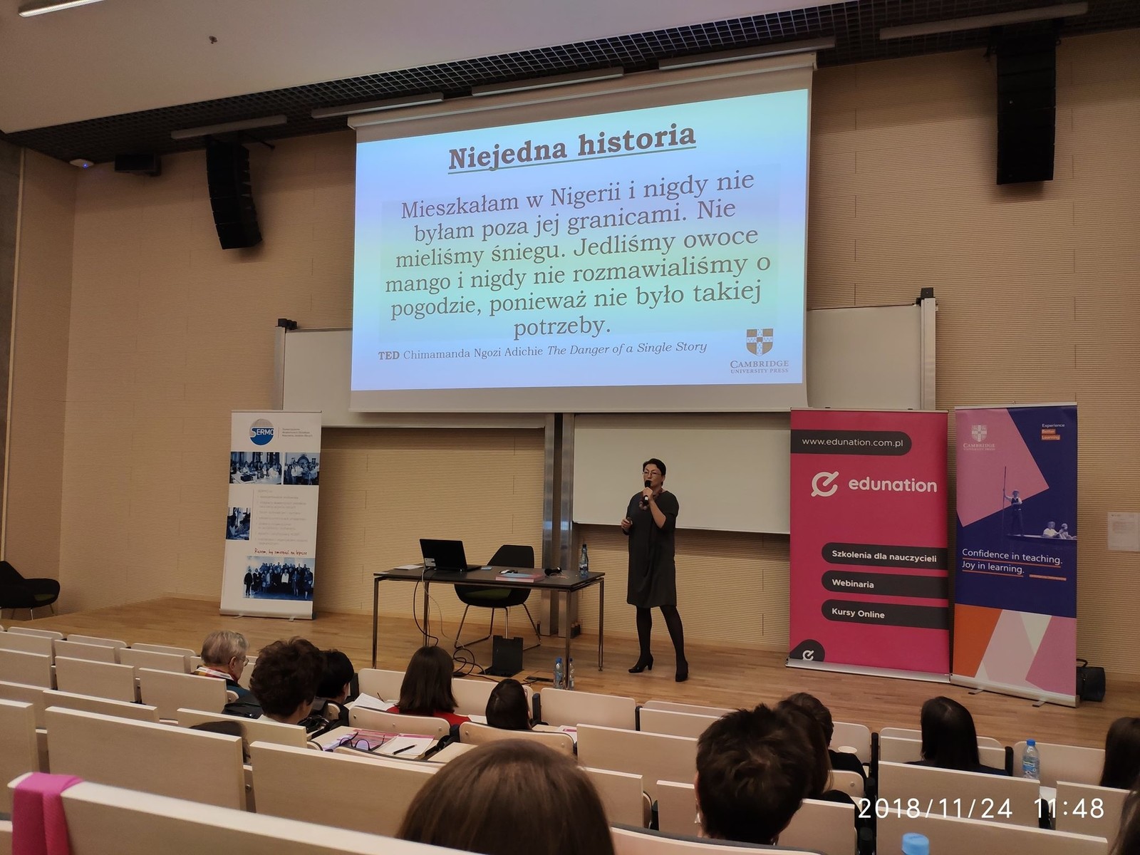 Dnia 24 listopada 2018 firma szkoleniowa Edunation pod honorowym patronatem Stowarzyszenia Akademickich Ośrodków Nauczania Języków Obcych SERMO zorganizowała kolejne szkolenie z cyklu Edukonferencja Uczę Dorosłych. W konferencji zorganizowanej w Centrum Zarządzania Innowacjami i Transferem Technologii Politechniki Warszawskiej miały przyjemność uczestniczyć mgr Magdalena Kawa-Ledniowska, mgr Karolina Potocka oraz dr Kamila Kosturek-Dybaś. Edukonferencja skierowana była do wszystkich nauczycieli języków obcych, którzy na co dzień pracują z uczniami dorosłymi bądź klientami biznesowymi.